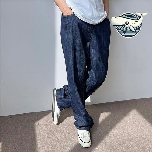 남성 여름 청바지 린넨라이크 데님 와이드 밴딩 이지팬츠