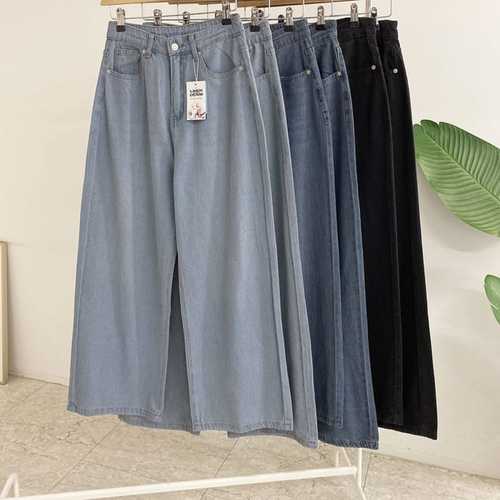 르위 캐주얼 통기성 쿨 린넨 밴딩 얇은 청바지 와이드 데님팬츠