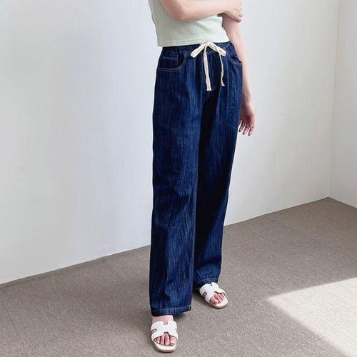 [셀러허브_여성트랜드패션]ONM 린넨 일자청바지 와이드 허리밴딩 데님팬츠 청바지 여