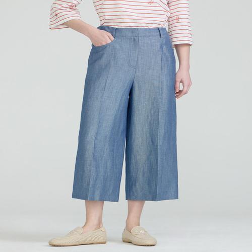 닥스 여성 라이트 블루 워싱 린넨혼방 하프 기장 와이드핏 뒷밴딩 데님 팬츠 (DLPA5B417B1)
