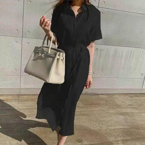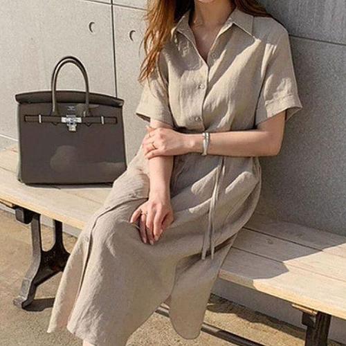 [에이치플러스몰]여성 린넨 버튼업 반팔 셔츠 드레스 출근 코디룩