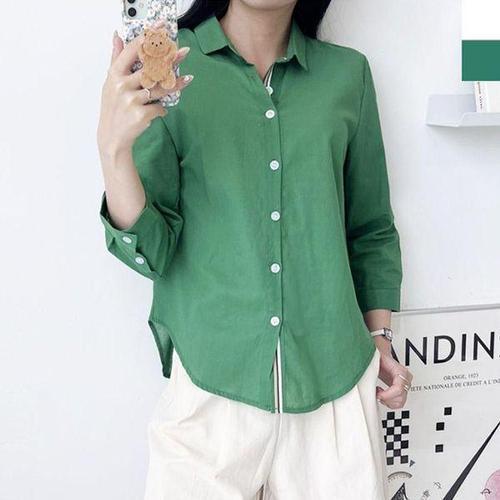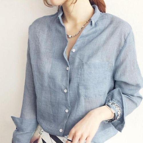 [에이치플러스몰]긴팔 셔츠 캐주얼 여자 린넨 필수템 블라우스 캐주얼