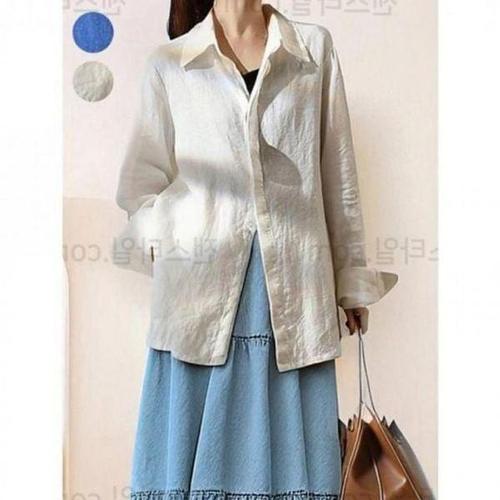 [에이치플러스몰]긴팔 베이직 셔츠 여자 린넨 올데이 블라우스 캐주얼