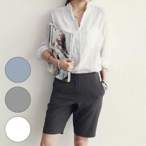 [에이치플러스몰]여성 8부 린넨 카라셔츠 1P 여름 블라우스 출퇴근룩