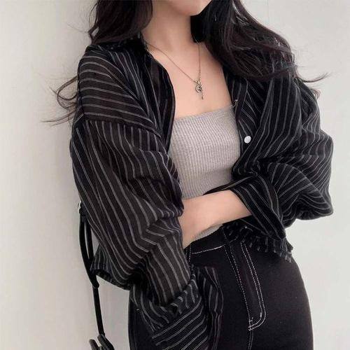여름 긴팔 래쉬가드 셔츠 여성용 캐주얼 루즈핏 면마 얇은 남방 슬림핏 린넨 자외선 차단 상의 LJX