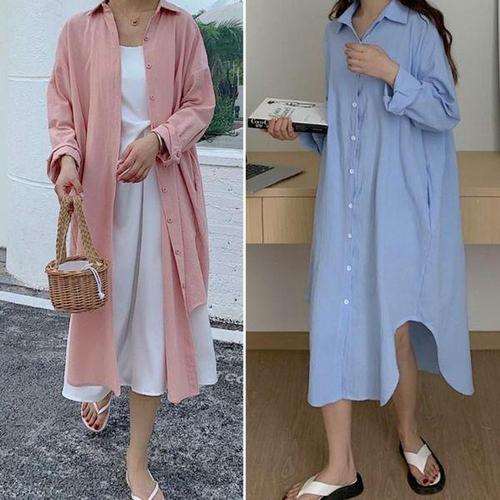 여성 여름 패션 시원한 린넨 롱 루즈핏 원피스 셔츠