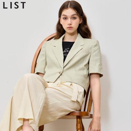 [리스트(LIST)] 품격있는 린넨 헤링본 크롭 재킷 (택가격: 338000원)