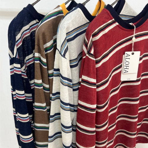 린넨 단가라 스트라이프 반팔 티셔츠 핑크