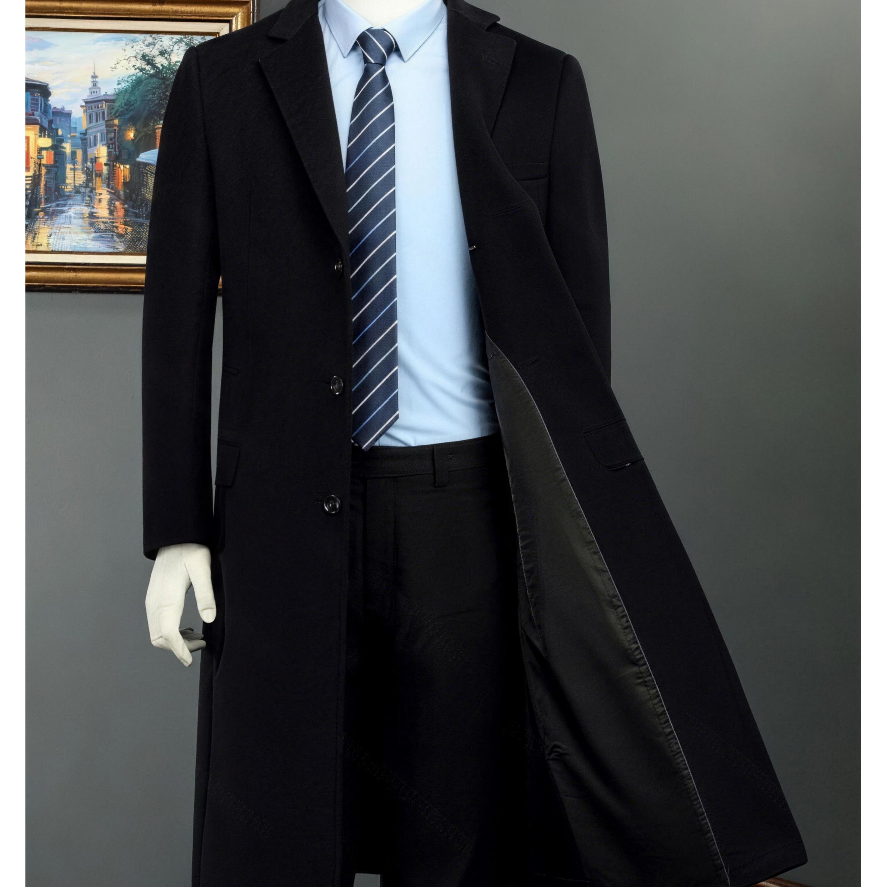 TEMU 봄/가을 남성 라이트 비즈니스 롱 트렌치 코트, 영국 스타일 두꺼운 블랙 캐주얼 트위드 , 세련되고 우아한 다용도 디자인, 다양한 정장 행사 및 일상 외출에 적합
