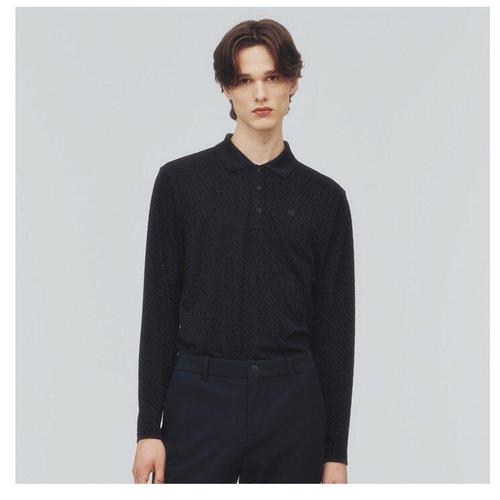 [링스골프][25FW] 남성 로고 패턴 코트나 소재 카라 티셔츠 L11E3TO211_BK
