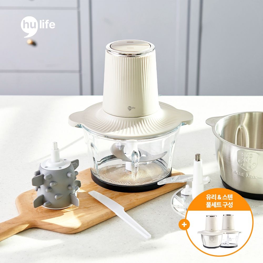 온휴 마늘박피기 강력2중칼날 멀티 다지기 3L + 유리 용기 + 스텐 용기 세트