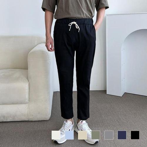[옷자락]남자 밴딩 9부 무지컬러 허리스트랩 린넨 팬츠