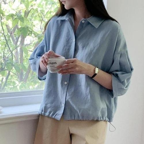 [다잇템][다잇템] 여자 드로우코드 클래식 SS 미니멀리즘 카라 컨템포러리 마원단 셔츠_17133929_588872