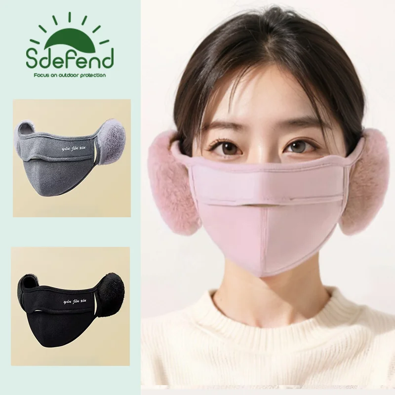 여성 가을 겨울 따뜻한 얼굴 마스크 3D 두꺼운 투인원 귀마개 통기성 방풍 사이클링 마스크 귀 보호