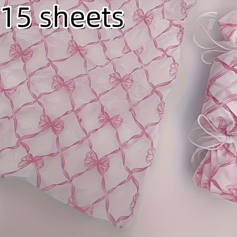 TEMU QOQI 핑크 메쉬 리본 패턴 선물 포장지 - 크리스마스, 데이, 생일 선물, 꽃다발, 파티 선물 및 선물 가방 채우기에 적합한 얇은 티슈 20"x14", 우아한 플로럴 디자인과 리본 장식, 선물 포장 용품, 선물 포장, 장식용 리본 디자인, 고급 종이, 선물 포장, 선물 주는 사람을 위한 최고의 크리스마스 선물, 추수감사절에 완벽함