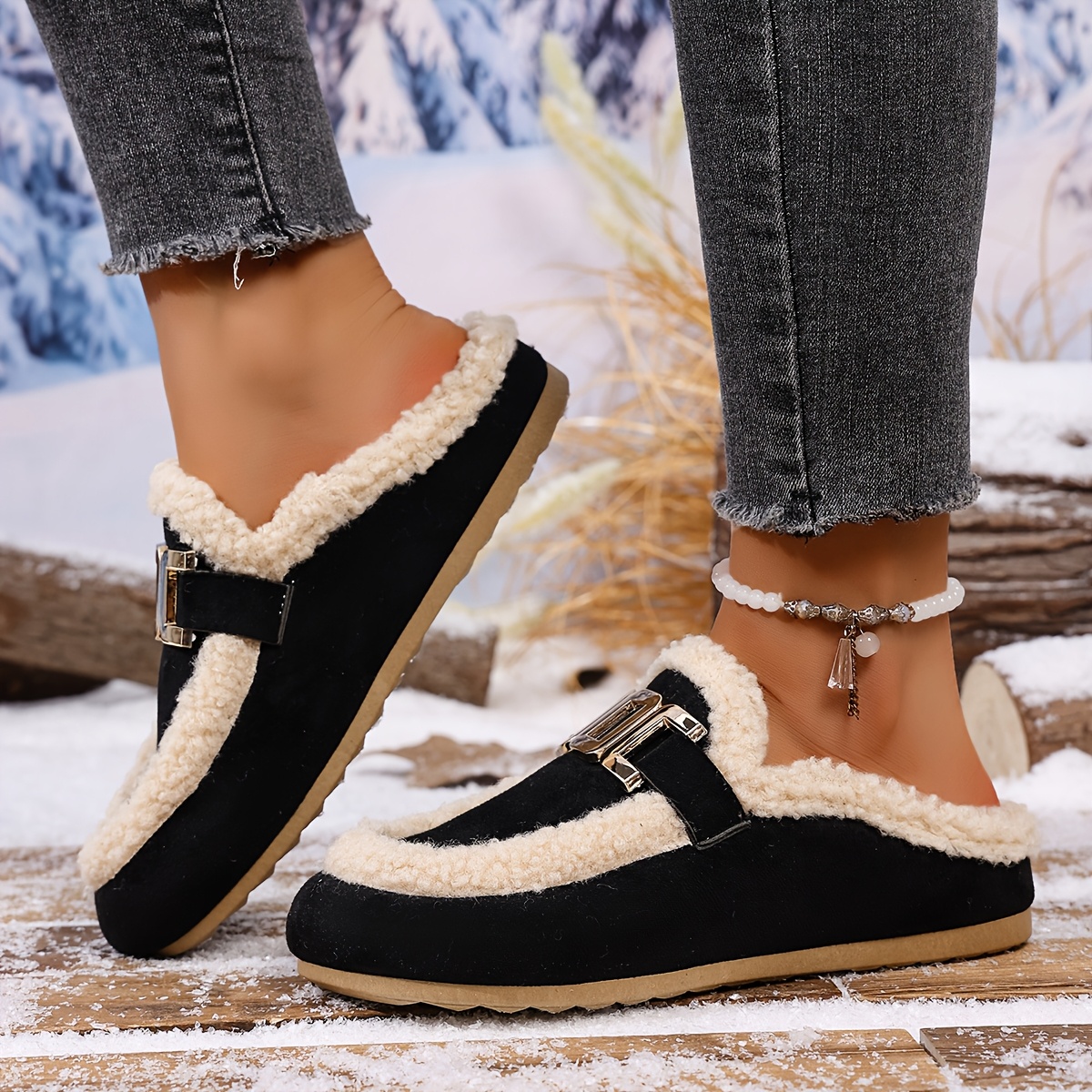 TEMU 여성용 플러시 실내 슬리퍼, 따뜻하고 아늑한 닫힌 발가락 미끄럼 방지 신발, 홈 음소거 슬리퍼