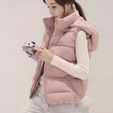 로미홀리 - [탈부착모자] 가울 겨울 여성용 면조끼 슬림 다운 패딩 면조끼 자켓-k109