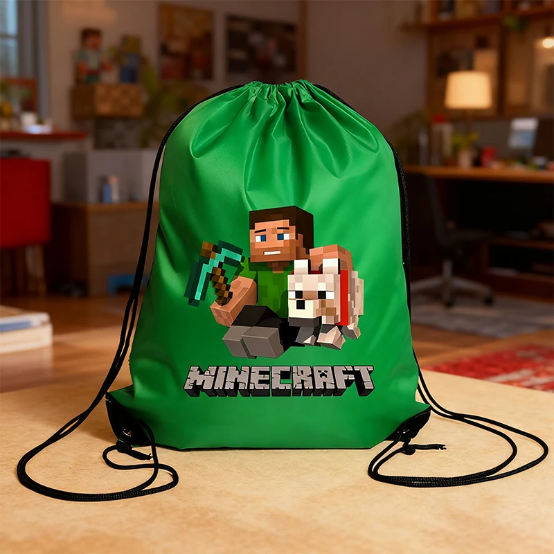 드로스트링 백팩 마인크래프트 게임 테마 프린트 방수 폴리에스터 핸드백 어린이 휴대용 의류 보관 가방 선물 가방