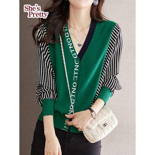 [쉬즈프리티]셔츠스플라이싱가디건_여성가디건