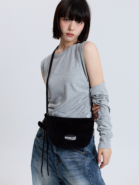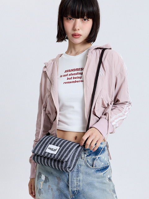 [마크니] 스트라이프 스트링 크로스백 차콜