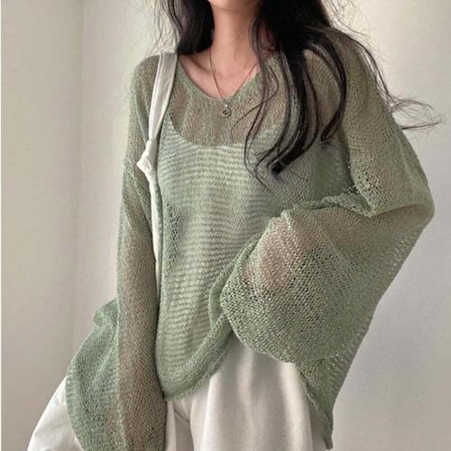 [셀럽하우스]망사니트 YAPP0384 여름 여름니트 그물 시스루 니트 긴팔 여성