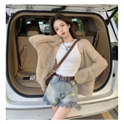 [셀럽하우스]망사 PISK5686 시원한 니트 그물 캐주얼휴양지 가디건 긴팔 여