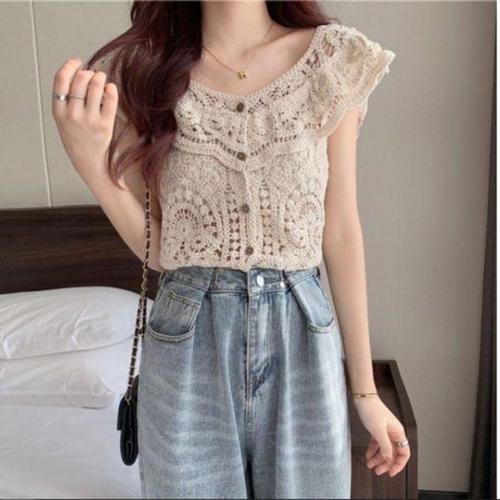 [에이치플러스몰]플로럴레이스 나시 수영복커버업 시스루니트 그물니트 망사니트 나시니트 슬리브리스 여..