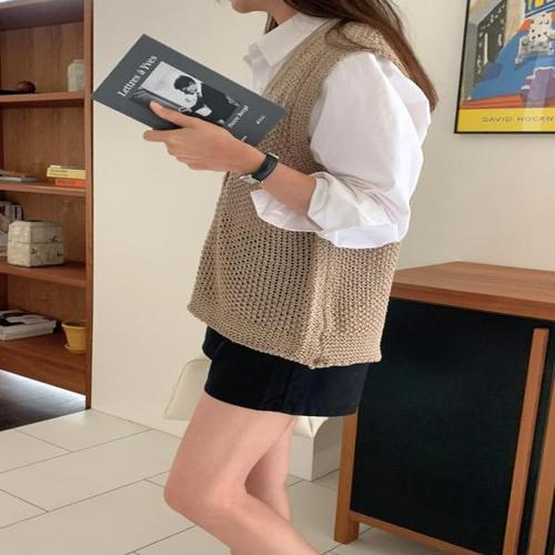 [다잇템]여성 위빙 빅사이즈 망사 비침 V넥 스웨터 조끼