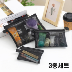 벨리아 메쉬 파우치 휴대용 미니 화장품 여행용 다용도 망사 파우치 3종세트