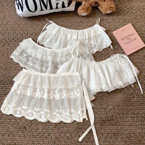 여름데일리룩 여자 망사 레이어드 패턴 레이스 페이크 랩스커트