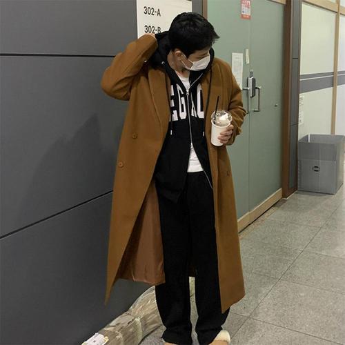 [옷자락]남자 여자 울 박시핏 어깨패드 테일러드 맥시 롱코트