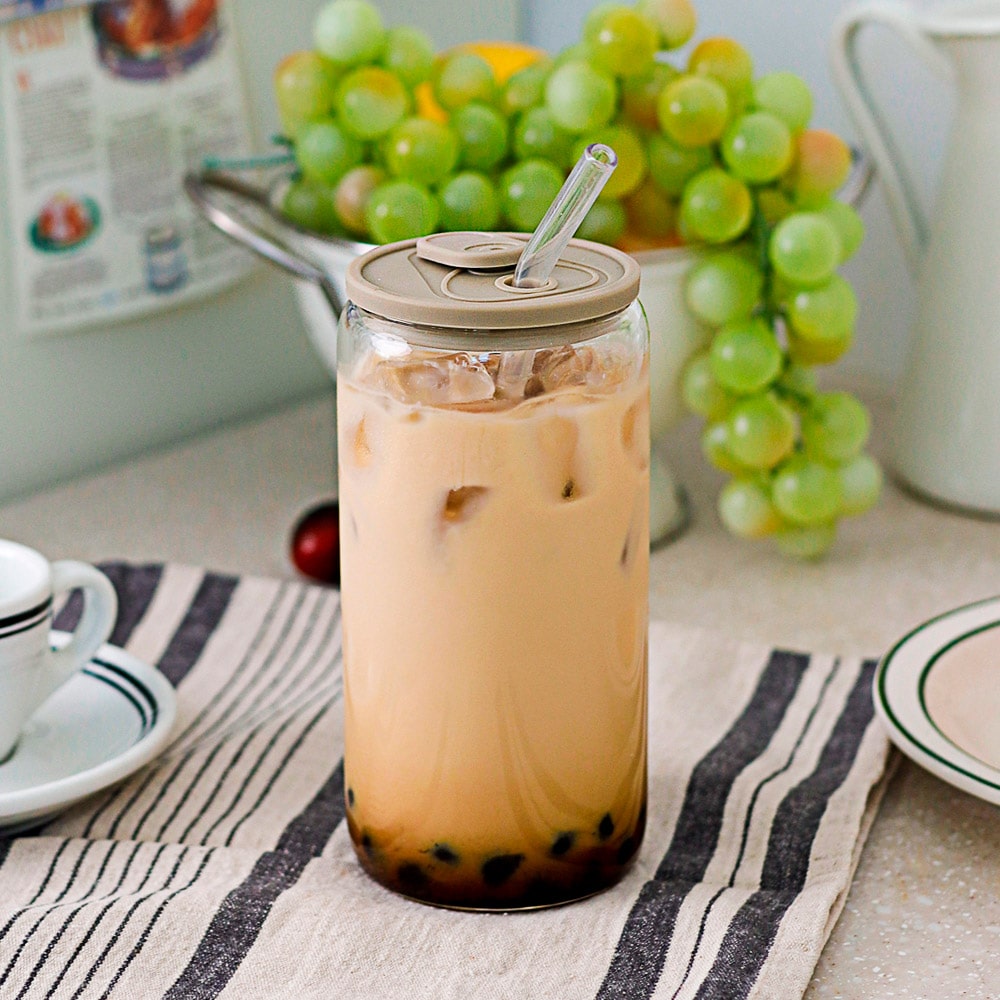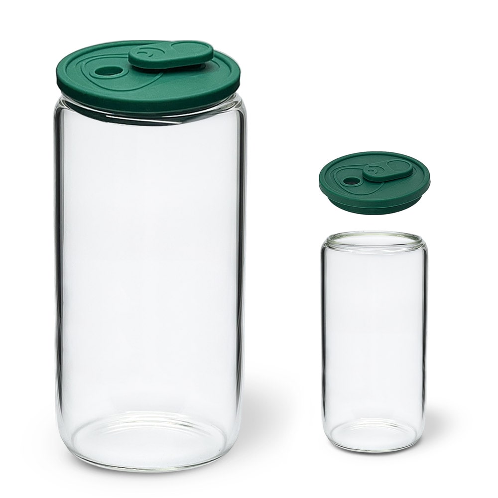 헥사 비어캔 내열유리컵 500ml 카키 실리콘뚜껑 하이볼잔 카페유리잔