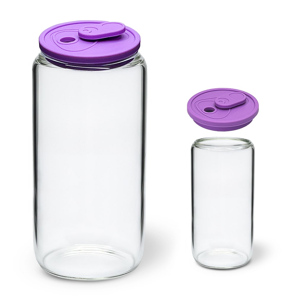 헥사 비어캔 내열유리컵 500ml 퍼플 실리콘뚜껑 홈카페 컵리드