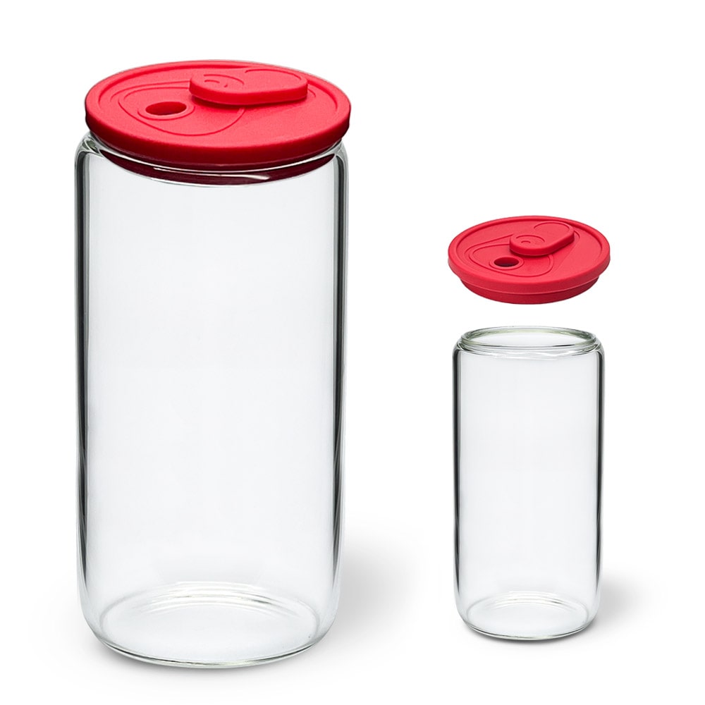헥사 비어캔 내열유리컵 500ml 레드 실리콘뚜껑 하이볼잔 홈카페