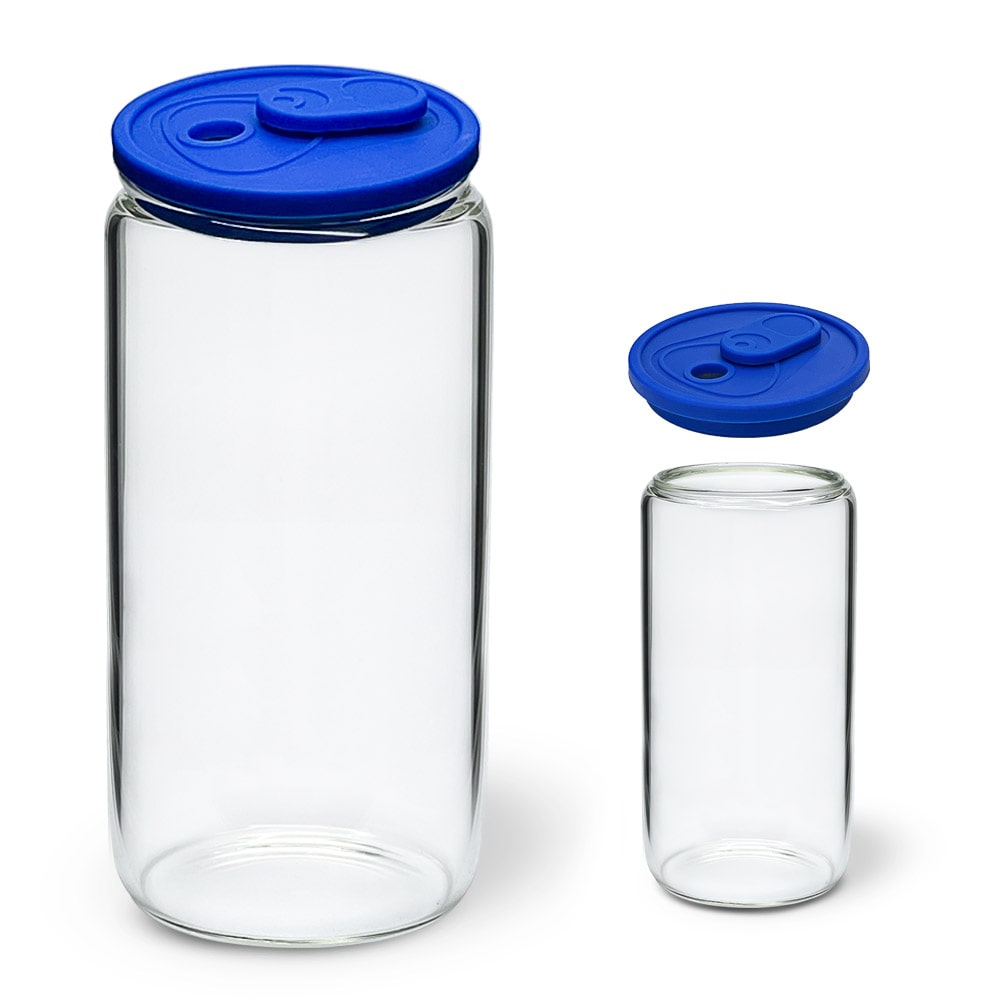 헥사 비어캔 내열유리컵 500ml 블루 실리콘뚜껑 맥주컵 유리잔
