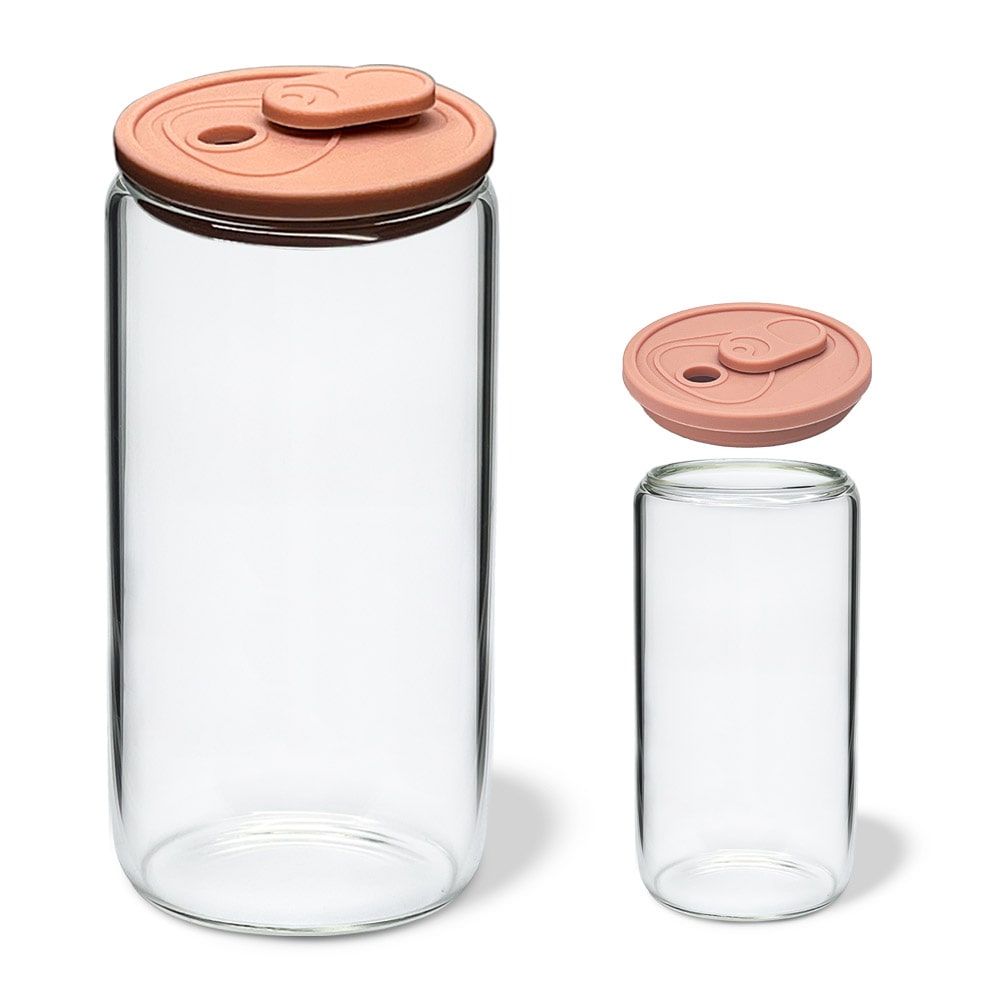 헥사 비어캔 내열유리컵 500ml 인디핑크 실리콘뚜껑 아이스커피잔 맥주컵