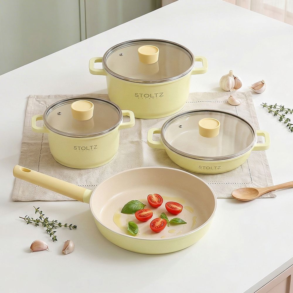 STOLTZ [비밀특가] STOLTZ 슈톨츠 IH 인덕션 레몬머랭 멀티 쿡웨어 세트 8P 국내생산 통주물 냄비 후라이팬 세트