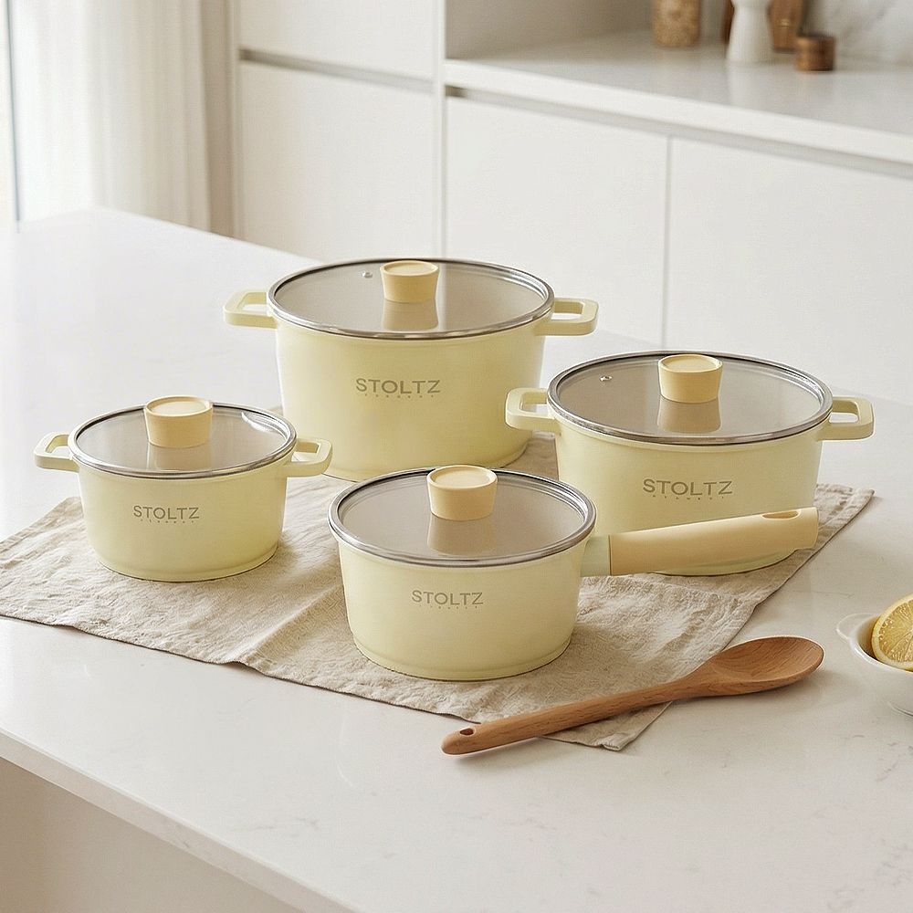 STOLTZ STOLTZ 슈톨츠 IH 인덕션 레몬머랭 멀티 쿡웨어 세트 8P 국내생산 통주물 냄비 후라이팬세트