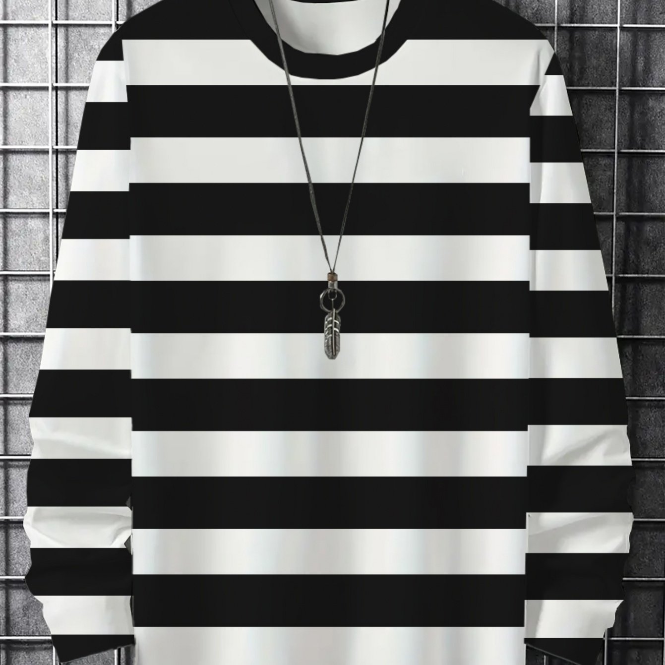 TEMU 남성 캐주얼 긴팔 티셔츠 - 블랙 앤 화이트 기하학적 라운드넥 레귤러 핏, 사계절 편안한 세탁기 사용 가능 상의, 클래식 패턴 내구성 좋은 원단 캐주얼 웨어