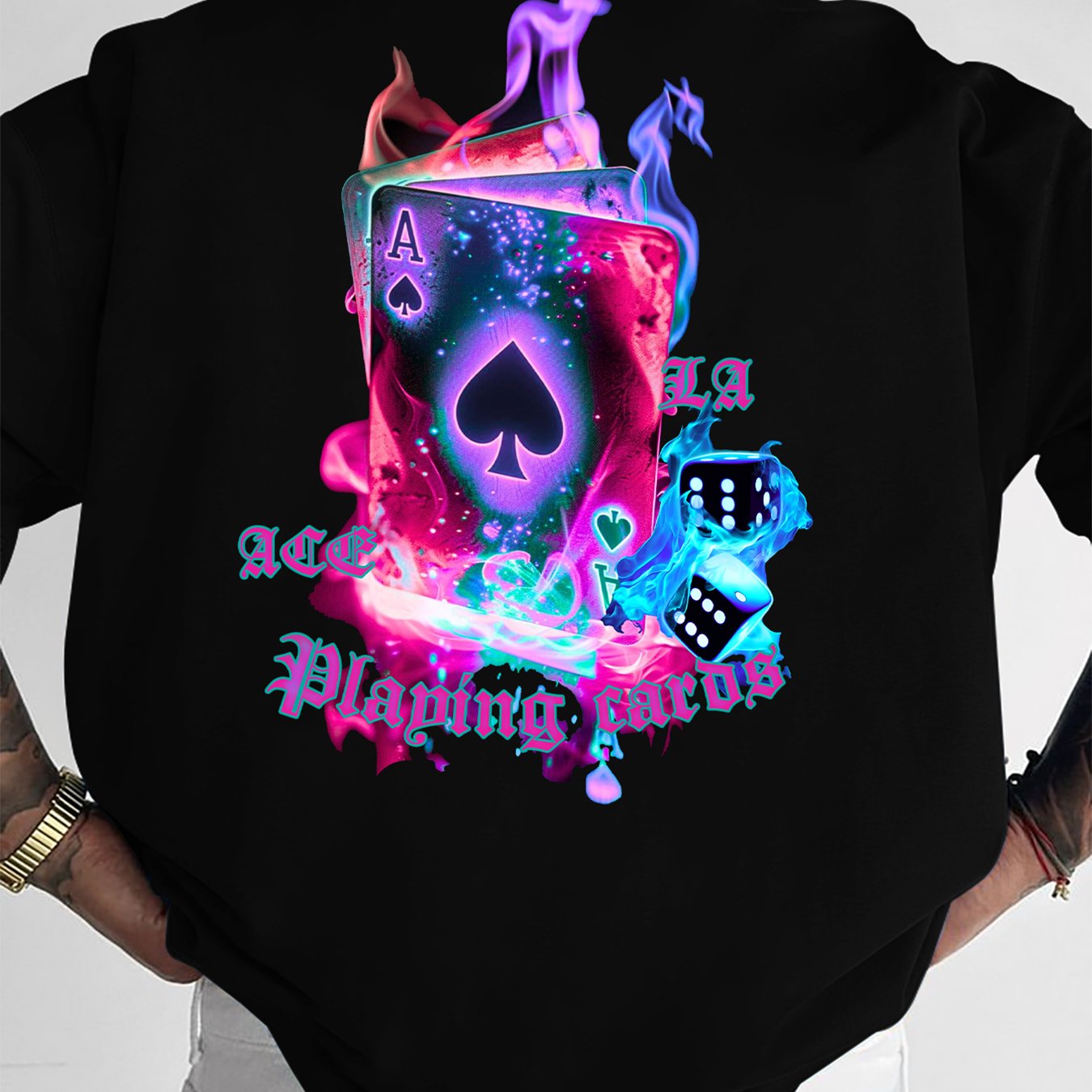 TEMU 남성용 오버사이즈 스트리트웨어 티셔츠, 불꽃 포커 카드 프린트 - 루즈핏 반팔 라운드넥 캐주얼 여름 티, 일상 출퇴근, 포커의 밤 & 캐주얼 복장에 적합, 기계 세탁 가능 포커 테마 의상