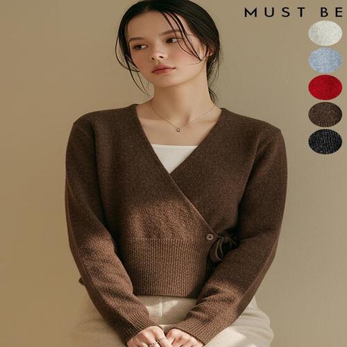 [머스트비]여성 울혼방 사선버튼 랩 브이넥 니트