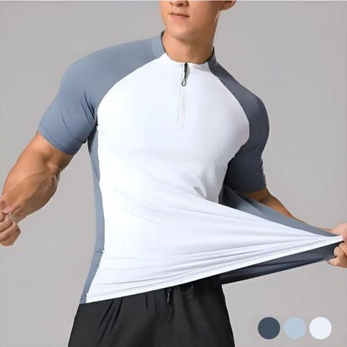 [에이치플러스몰]쿨티셔츠 남자 쿨론 헬스 러닝 머슬핏 냉감 집업 반팔