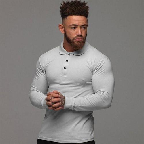 [셀러허브_여성트랜드패션]긴팔 상의 남성 남자 머슬핏 카라티 티셔츠 카라티 남자 무지 머슬핏 베이직 ..