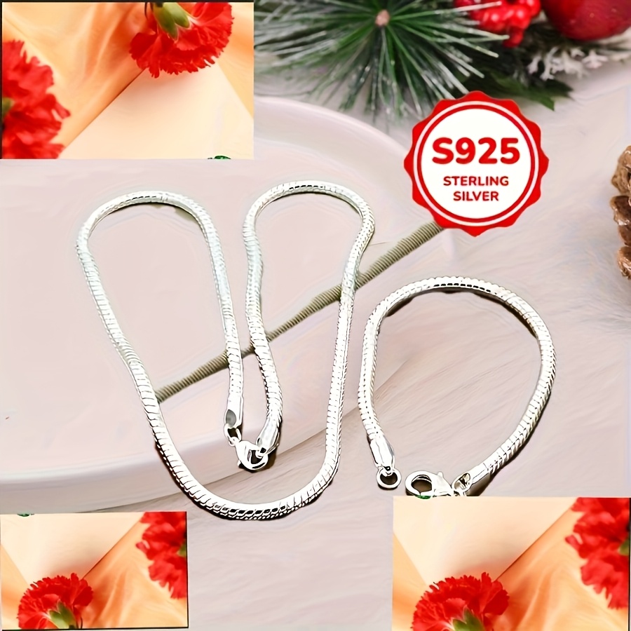 TEMU 2개 세트 - 실버 스네이크 본 팔찌와 목걸이 세트, 내구성 있는 소재로 제작