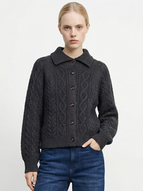 [스테이위드미] 메리노울 그랜마 케이블 가디건_CHARCOAL GREY