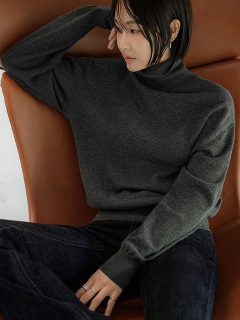 [메무아] 메리노울 하이넥 니트(차콜)