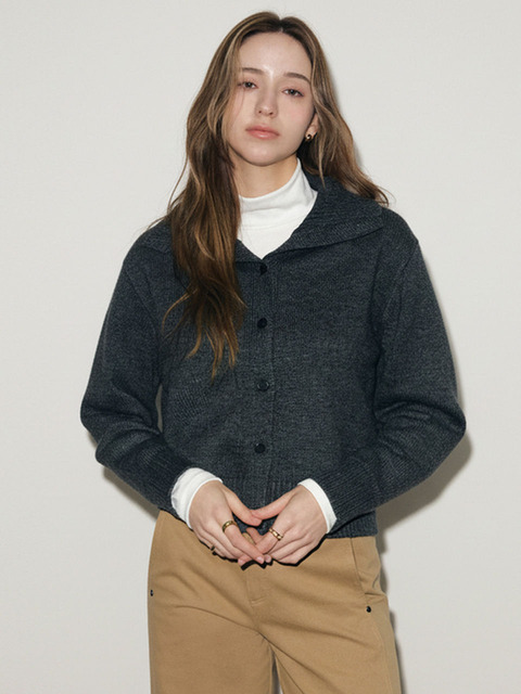 [그노노이] 메리노 wool 카라 가디건 (Charcoal)