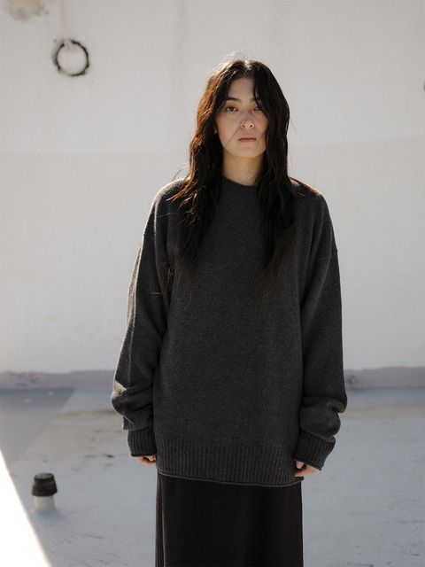 [오브베이지] CASH MERINO WOOL ROUND KNIT_CHARCOAL