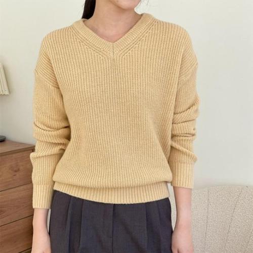 [신상오픈런]메리노울 왕골지 드롭숄더 기본핏 브이넥니트 여성티셔츠 (28812155)