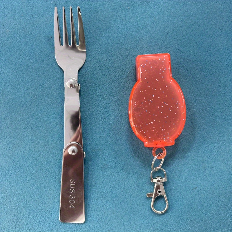 TEMU 1 세트 스테인리스 스틸 접이식 커트러리 (키체인 포함) | 포크 및 케이스 포함 - 휴대용, 재사용 가능, 야외, 캠핑, 피크닉 필수품 | 컴팩트하고 내구성이 뛰어난 커트러리 세트